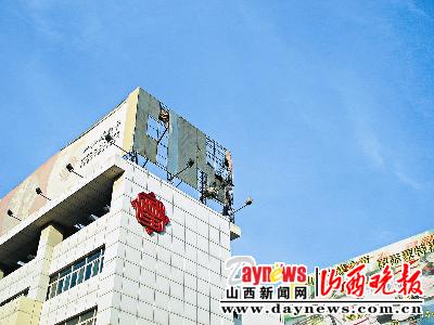 楼顶,废弃广告牌左摇右晃(图)