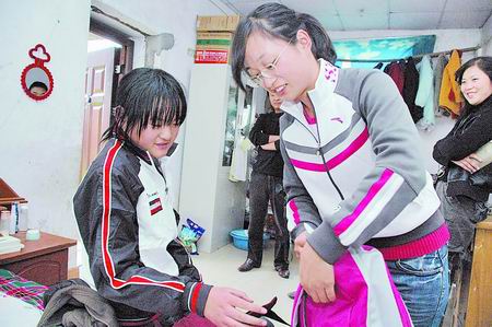 玲玲把婷婷(左)接到自己家