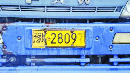 昨天上午10时30分,高速交警郑州圃田大队民警杨华、阎朝晖在对一辆货车例行检查时,发现货车车牌中“豫K”已经损坏了,司机粘贴一块纸板修补了一下,又用毛笔描画了“豫K”俩字(如图)。