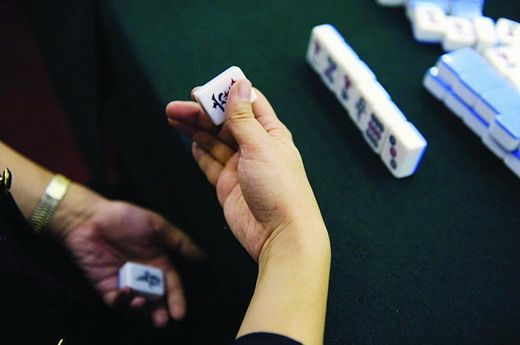 (郭安迪演示麻将中的换牌技巧“蚂蚁上树”。图/记者秦楼)