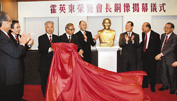 霍英东半身铜像揭幕 曾宪梓三鞠躬表达怀念(图)