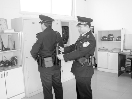 ▲执勤前先“装备”好自己。