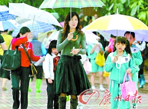每天下午四点半钟学校放学后,在广州市的各个小学门口,接孩子的场面非常“壮观”:除了接孩子的家长外,还有同时接走三、五个学生,甚至领着一队孩子离开的年轻“家长”,学生们则统一佩带着胸卡,卡上贴着自己的登记照。