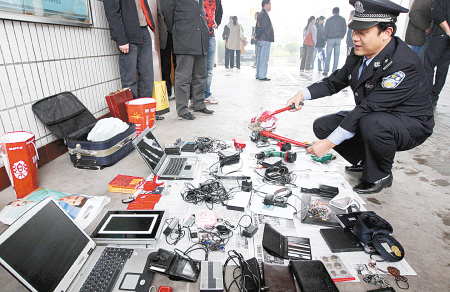 警方查获的部分赃物和工具。记者 谢伟 摄