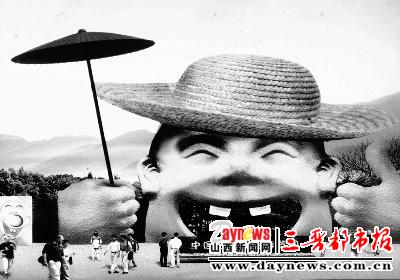 一位老汉头戴草帽又打着伞,加上两旁墙上雕塑的千姿百态的笑相,有几个人甚至笑 “掉”了大牙。走到中国万荣笑话博览园入口处,这一以人的头像夸张手法而制作的特殊之门,既令人捧腹,又使人深思,每个游客都会驻足观赏。如此大手笔、大创意、大制作,出自何人之手?