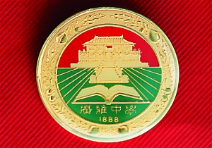 外圈与内圈之间用桃树、李树构成对称的花环,它簇拥着广雅,表示广雅桃李满天下。