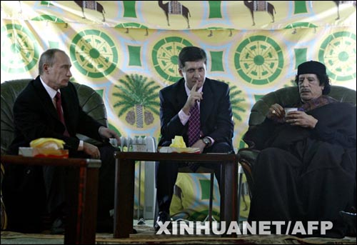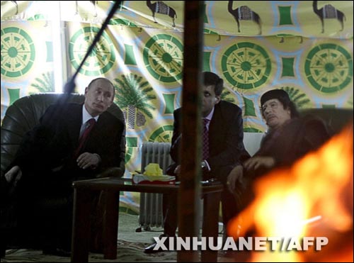 普京与卡扎菲帐篷会谈(组图)