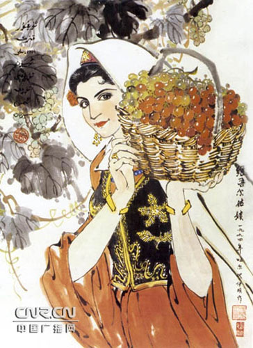 吐尔地·依明国画作品《维吾尔姑娘》