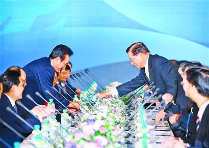 陈云林与江丙坤在签署仪式上交换协议文本 新华社发