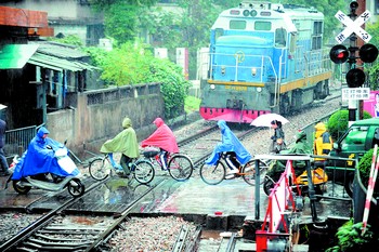 由于人们安全意识不够强、部分路段缺乏防护措施等原因,火车撞人事件时有发生。这是昨日上午,在城区一铁路道口,火车头刚过人们就迫不及待地横过铁路。小刘军 摄