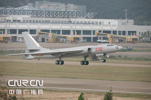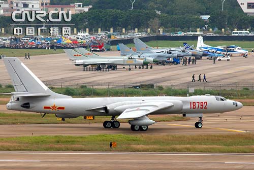 中广网珠海11月6日消息(记者温广为 梁卫浩 张丹丽)昨天上午10时30分,伴随着巨大的轰鸣声,一架轰油-6和两架歼-8D战斗机出现在珠海航展的中心上空,为观众上演战斗机空中加油。