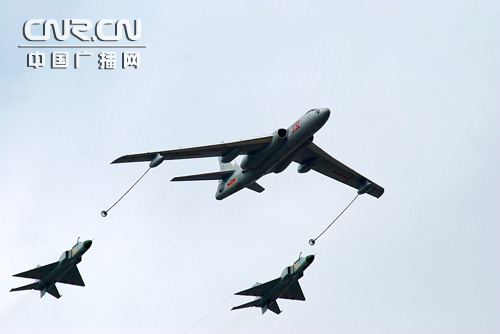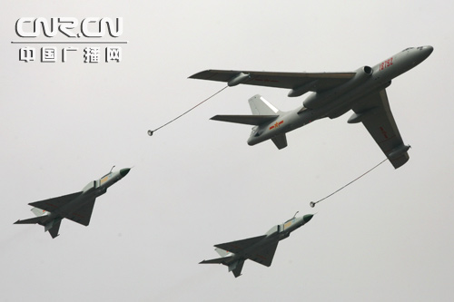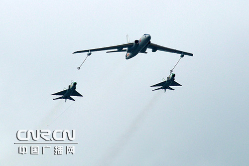 轰油-6珠海航展上演战斗机空中加油【组图】