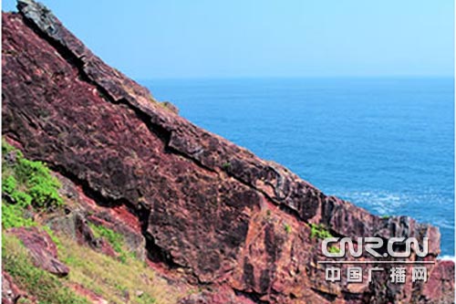 赤洲位于大鹏湾进入赤门海峡的入口,该岛大约七成的岩石为红色及褐红色砾岩、砂岩及粉砂岩,主要可在东部找到,其余的则为凝灰岩(大多是火山灰晶屑凝灰岩)。自沉积层脱落的大块砾岩和砂岩散布东岸,著名的奇石包括「狗头石」、「赤漠迷城」和「蚺蛇吐舌」。