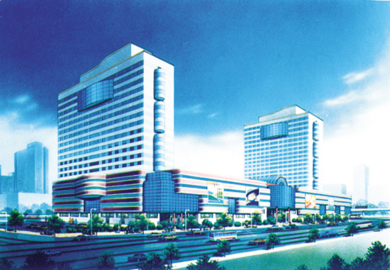 筹建中的五爱服装城双塔楼效果图
