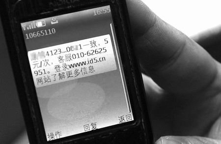 该工作人员提醒说,用手机编辑“姓名、身份证号码”发送到10695110,也能迅速帮您识别他人身份证、验明身份。记者把自己的姓名、身份证号码发送过去后,立即收到了查询密码,同时提醒从手机话费中扣掉5元钱。如果想继续验证,可登录指定网站,输入手机号和查询密码,查看被查者照片。