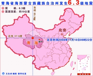 新华社西宁11月10日电 据青海省地震台网测定,11月10日9时22分,青海省海西蒙古族藏族自治州大柴旦地区发生6.3级地震。格尔木市、德令哈市震感强烈,有感范围东至西宁,格尔木市区市民纷纷跑出建筑物避险。由于整个地震灾区人口稀少,目前尚无人员伤亡报告。