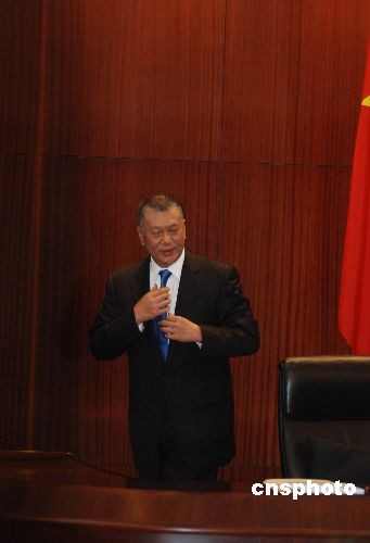 十一月十一日下午,澳门特区政府行政长官何厚铧在立法会发表二〇〇九年财政年度施政报告。这是何厚铧任内最后一份年度施政报告。图为报告结束后,何厚铧准备离开。中新社发 毕永光 摄
