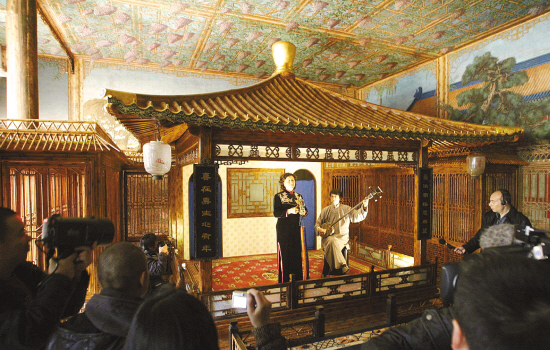 乾隆花园是乾隆在位时作为宁寿宫的一部分来兴建的,面积6400多平方米。倦勤斋位于宁寿宫花园的最北端,与著名的珍妃井仅一门之隔,是故宫里工艺最精美、装潢最奢华的建筑,汇聚了精美的小戏台,绝无仅有的绢面通景画,令人叹奇的玉雕、木雕、竹丝镶嵌和竹簧雕刻等,创造了代表当时中国奢侈优雅空间和登峰造极的室内装饰艺术。新华社发