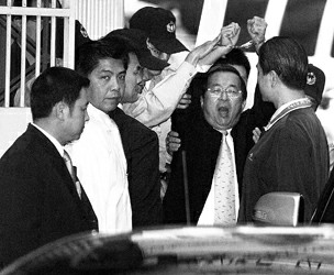 陈水扁戴着手铐被送往法院