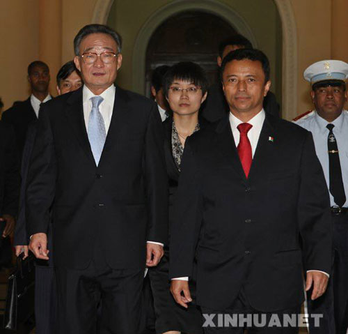中国全国人大常委会副委员长兼秘书长李建国等中方陪同人员,马达加斯加外交部长等主要内阁成员参加了会见和签字仪式。