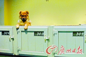 本报讯 (记者余莎米、李立志摄影报道)番禺爱狗人士最近开办一家“宠物酒店”,为宠物狗提供寄养、美容护理等服务,照顾周到,价格适中,因而受到远近狗主们的热捧。
