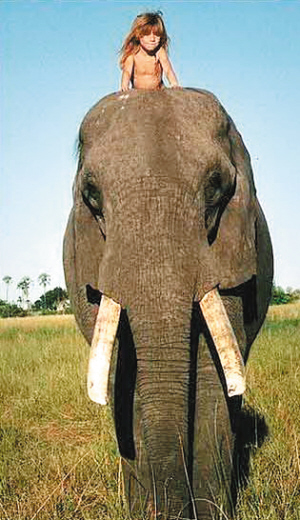本报北京专电据英国《太阳报》报道,与鲁德亚德-吉卜林小说《小泰山》一样,法国女孩蒂皮-德格雷也是在野兽群中长大的,她与那些野兽成为了朋友。大象、猎豹、鸵鸟都将蒂皮视为它们中的一员,蒂皮可以拥抱它们,与它们跳舞,甚至骑在它们背上。