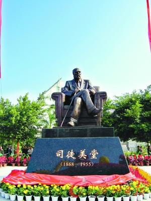 昨日上午,司徒美堂先生铜像揭幕仪式在开平城市南广场隆重举行。据开平文广新局副局长黄力奔介绍,塑像整高4.25米,其中人物铜像高2.2米,铜像下面的大理石和台阶共2.08米,重量为1.2吨。