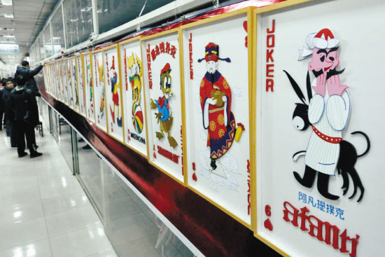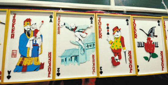 老曲告诉记者,“大、小王是最难制作的牌,为了将龙和凤做出腾空的感觉,足足各花了一个月;为了使它更加立体,厚度达到了七层。”老曲告诉记者,在制作的过程中,只要突然有了灵感,无论吃饭还是睡觉都得往后排,因此制作到午夜和不吃饭都是常有的事。本报记者 白 昕 摄 影 李双琦