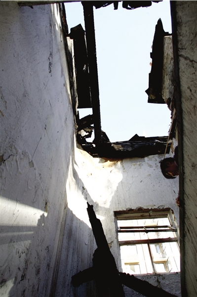 接警后,西客站消防中队消防员最先赶到现场。此时,简易房已燃烧殆尽,4层居民楼楼顶燃起五六米高的火焰。火借风势,向西侧的一栋居民楼蔓延。为避免发生危险,燃气公司工作人员将燃气总阀门关闭。