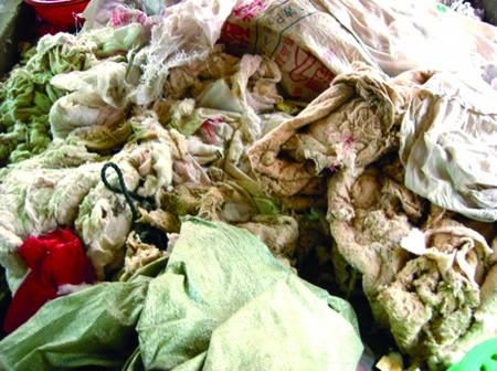 ▲"黑心棉"资料片:济南西郊的加工厂里,一些棉絮比这还要烂得多。