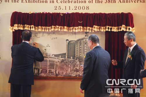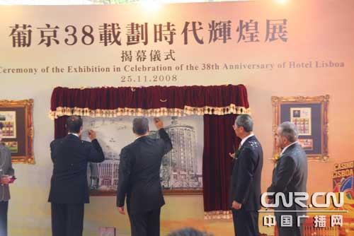 中央台澳门11月25日消息(记者宋薇)澳门博彩股份有限公司行政总裁何鸿燊先生今天下午3点与澳门各界欢聚在“葡京38载划时代辉煌展”开幕式,共贺葡京开幕三十八周年。他还邀请嘉宾共同欣赏澳门地标葡京酒店38年来珍贵的历史图片和实物。澳门行政长官何厚铧作为主礼嘉宾出席了开幕式。