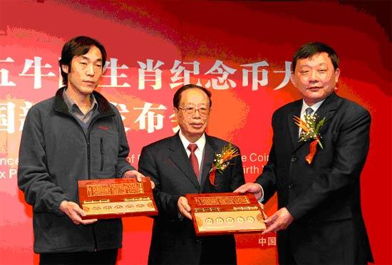 各位领导、钱币专家都先后对该藏品作出了高度评价。率先珍藏了“国宝五牛图生肖币大全”第00855号的著名相声大师牛群,通过电话向本次会议转达了由衷的祝贺。牛群属牛,生于1949年,与共和国同龄,与中国人一样爱牛、敬牛,儿子恰好也属牛,收藏这套生肖贺岁藏品,他本人极为欣喜。