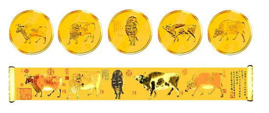 纯金“五牛图生肖纪念币大全”首度亮相