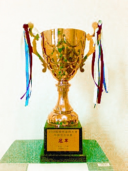右图:胡志伟的冠军奖杯(2008超级杯麻将大赛中国区总决赛)。