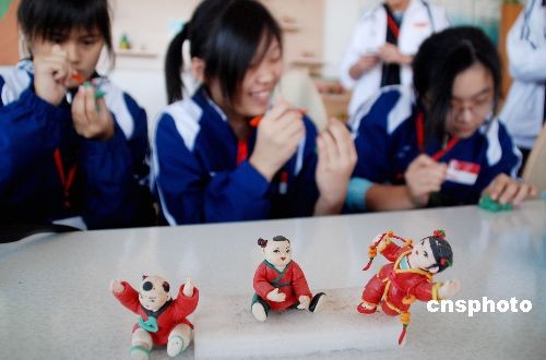 10月27日,新加坡基督堂中学的61名师生来到济南市东方双语实验学校进行学术交流访问,他们将在今后的4天时间里学捏面塑、学拉二胡,到中国同学家里体验生活,感受中国文化。中新社发 高原源 摄