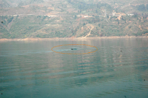流经贵州六盘水市水城县野中乡、六枝特区中寨乡等地的牂牁(音zangke,编者注)江近来不断传出奇闻:江中有巨型“水怪”出没,一艘运煤的轮船曾被其掀翻至江底。11月30日,六盘水市副市长范三川带队考察牂牁湖时,鳍有8米长的“不明水生物”再次出现在湖面翻腾,随行的电视台摄像记者拍下了长达1分钟的全过程。