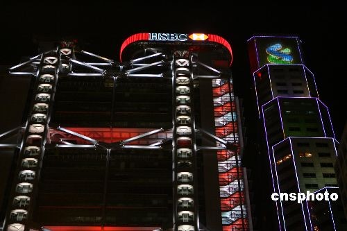 继汇丰银行先后裁人后,十二月二日,渣打银行表示,将裁员约二百人,占总员工数目百分之四。图为渣打银行夜景。中新社发 武仲林 摄