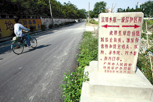村民并不知道他们所住的地方就是石井河的“源头”。清湖村70岁的李老伯带我们看村口的牌坊,上面写道:“清溪绿水物华天宝龙居地,湖海荡漾人杰地灵凤鸣幽。”李老伯说,以前村上有个大湖,可惜现在湖水没有了,河水也臭了。“30年前,我还经常到涌里游泳。那时河里好多鱼……”