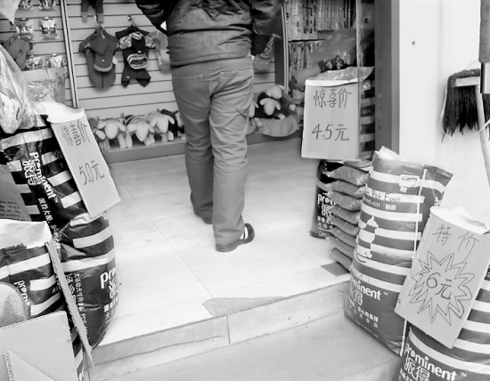 对于宠物市场的惨淡,很多长年饲养宠物的消费者,平时最关心的宠物口粮,也开始降价搞促销。很多宠物用品店的门前都张贴着宣传海报,有的还在狗粮中插着促销价格4.5元、6.5元的小牌子。