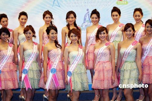 资料图:十一月十二日,参加『2008亚洲小姐总决赛』的二十名中外佳丽在香港一家酒店登台亮相。本届亚洲小姐竞选以“亚洲亮点 艳光爱地球”为主题,总决赛将在十二月初举行。中新社发 洪少葵 摄