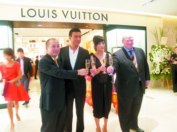 今年9月12日,世界顶级奢侈品牌路易威登长沙店在美美长沙国际名品商场隆重开业。图为高云安(左一)与其中国区总裁施安德和影星赵薇、胡军出席开业仪式。
