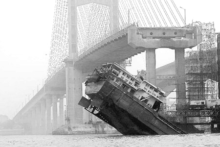 石桂德说,船头最多只是擦碰了一下桥墩,因为在大桥倒塌之前,他感觉不到船身有撞桥而产生的震动。“船沉后,我赶忙打电话给海事局。当时我还不知道九江大桥倒了,我还跟老板说是施工桥架倒了。等天亮了,才知道是桥塌了。”