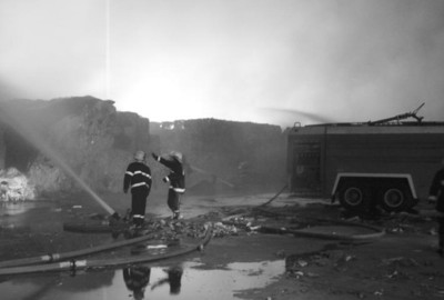 消防队员在造纸厂火灾现场扑救大火 新华社发