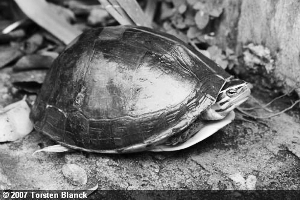 还有的龟不缩头。大头平胸龟俗称鹰嘴龟,是生活在我国南方的一种龟类。听名字我们可以知道这种龟长着出奇大的头部。那么它的头大到什么程度呢?大到以至于缩不进壳中,只得露在外面,当然,这个头已经足够硬,而且嘴的威力很大,所以不用缩进壳里了。鳄龟类也不能把头缩进壳内。