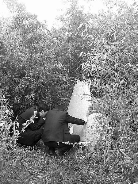 天爷庙是禹州市与登封市交界处的一座庙,在当地传说中,天爷庙之北曰“神前”,天爷庙之南曰“神后”。图为有关人员辨认天爷庙古碑。