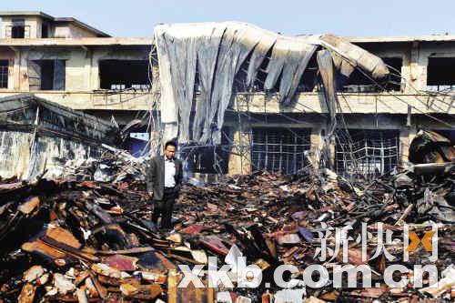 但为了防止大火复燃,仍有消防队员在现场清理火场。中午11时,在确认大火彻底被扑灭后,留守的消防队员才离开。昨日中午12时许,记者再到现场回访时,大火已被扑灭,起火仓库内家具几成灰炭,散发着浓烈的焦味,现场的警戒仍未解除。电线短路引大火?