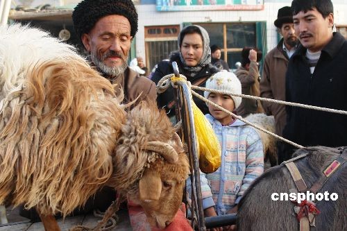 中新社乌鲁木齐十二月九日电 (记者 闫文陆)今天是穆斯林的传统节日——古尔邦节,新疆一千多万穆斯林走亲访友,宰牲待客,用传统的方式欢庆这一重大节日。
