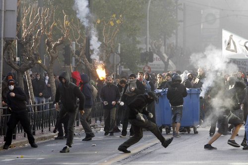 在首都雅典,示威者点燃市中心宪法广场的巨大圣诞树,一些年轻人纵火时还高唱圣诞歌曲,甚至在点燃的圣诞树前拍照留影。与此同时,希腊一些政府部门遭到攻击,一些示威者向内政部大楼投掷石块,还与议会大楼外的防暴警察发生冲突。议会大楼对面的外交部一层大厅则被人纵火,所幸很快被扑灭。