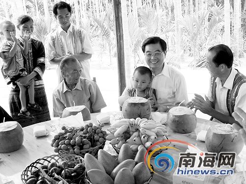 今年四月九日,胡锦涛总书记视察三亚市凤凰镇文明生态村,在村民苏就清家做客。