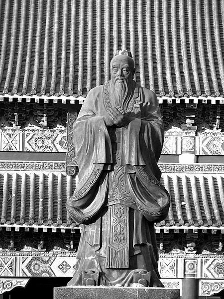孔子视鲁国为“父母之邦”,但对“祖先之国”宋国也有感情,他不仅曾到宋国学殷礼,而且娶了个宋国太太。图为夏邑孔子还乡祠里的孔子铜像。